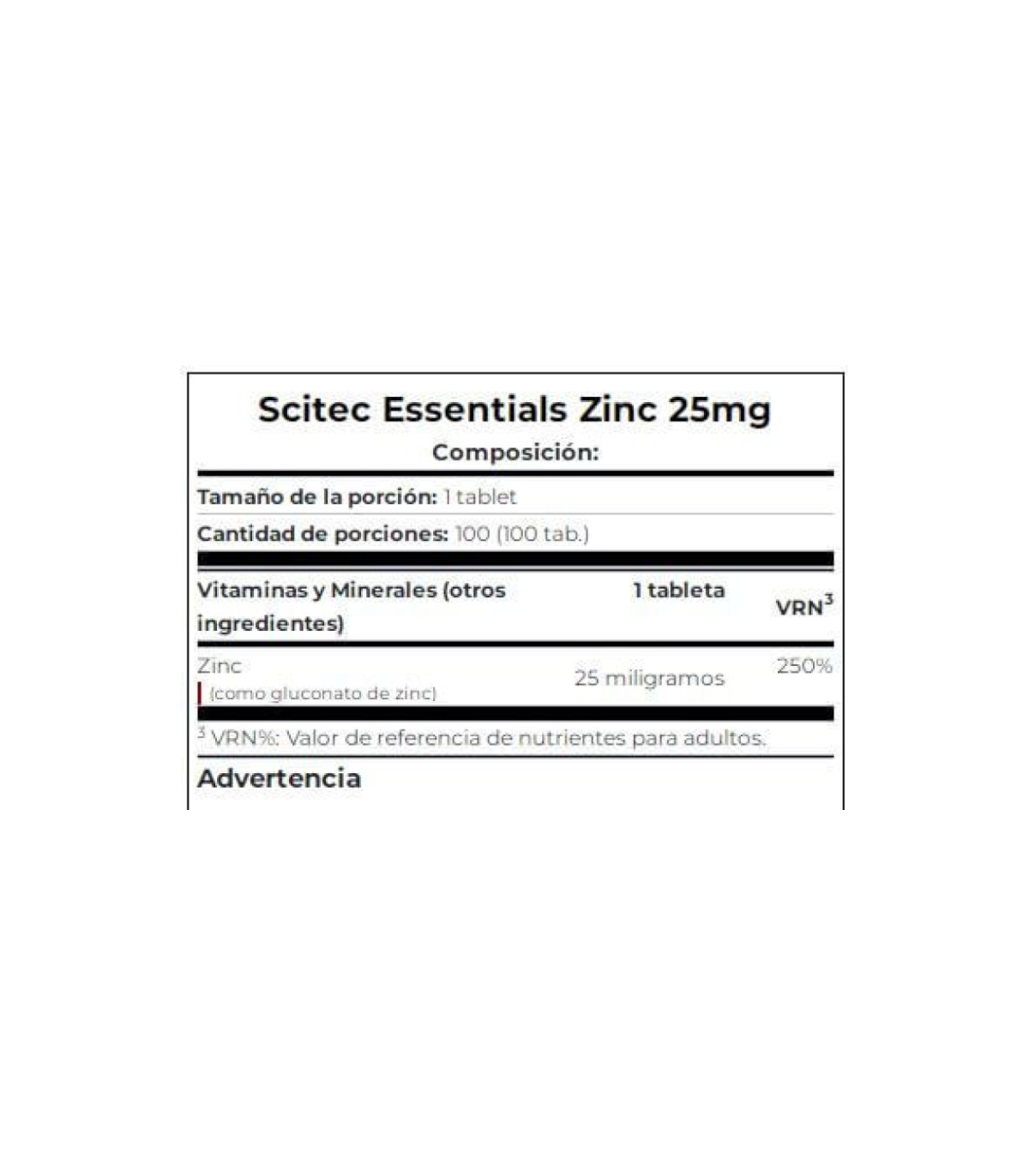 Zinc de Scitec Nutrition es un micronutriente esencial que desempeña un papel importante en la función celular, la síntesis de proteínas, el crecimiento y la reparación de tejidos, el sistema inmunológico y la salud de la piel, el cabello y las uñas.