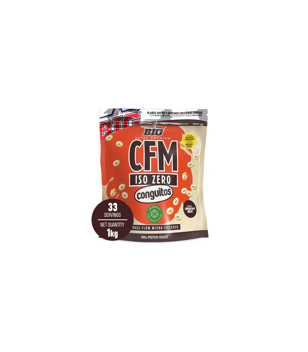 CFM Iso Zero de Big es una evolución natural de la emblemática CFM Iso Dry, elaborada exclusivamente con aislado de proteína de suero al 76% y con una de las mejores materias primas existentes en el mercado: Provon® 295 CFM de Glanbia Nutritionals.