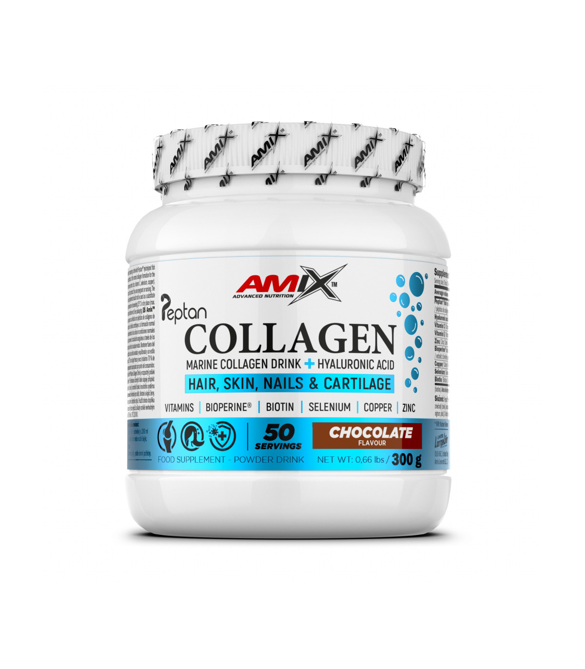 Colágeno marino de Amix es un complemento alimenticio en polvo diseñado para la preparación de una bebida con péptidos de colágeno marino Peptan®. Se combina con ácido hialurónico, vitaminas (C, E y biotina), minerales como zinc, cobre y selenio, y Bioperine® (extracto de pimienta negra).
