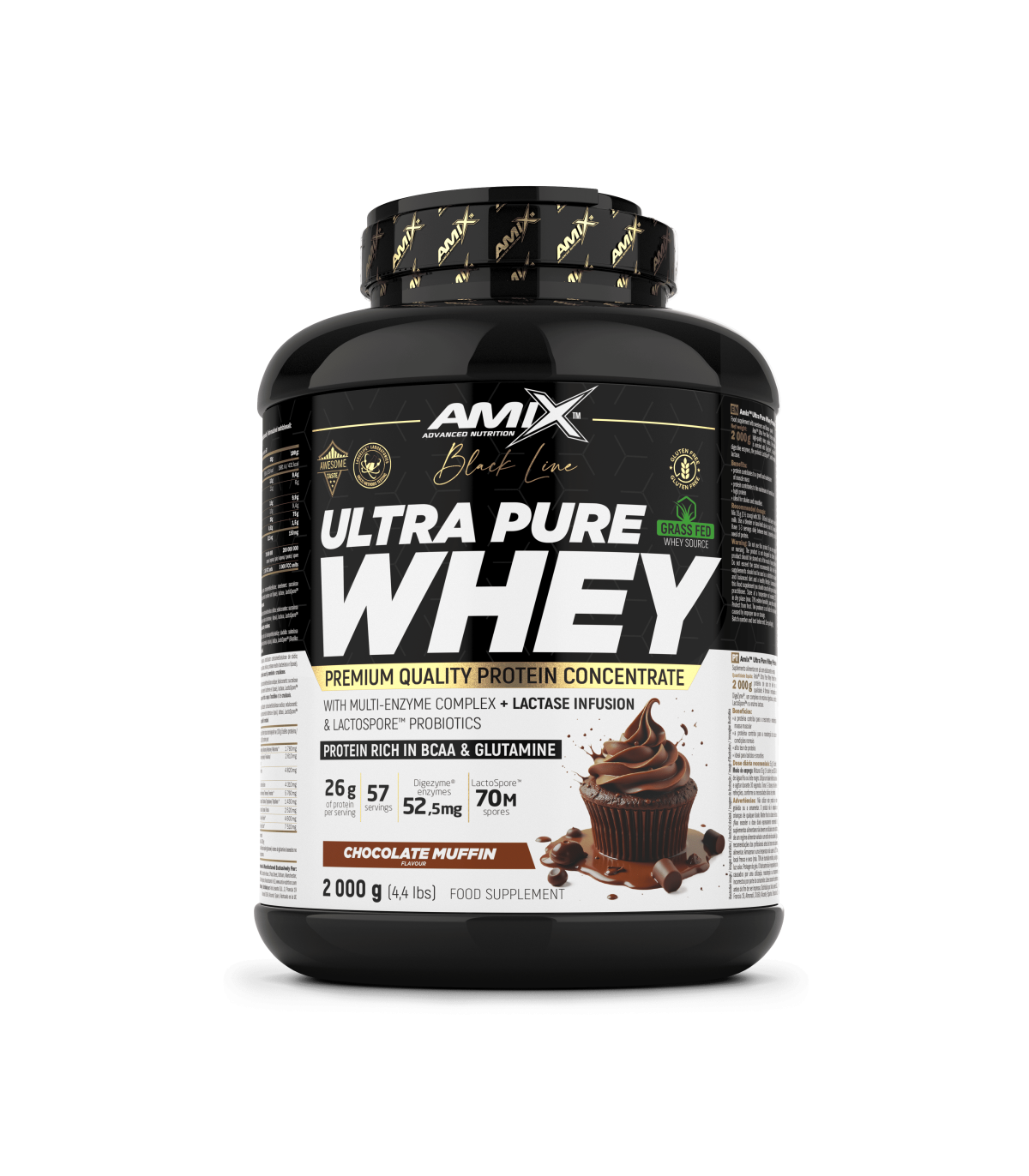 Ultra Pure Whey Protein de Amix es un complemento alimenticio en polvo a base de concentrado de proteína de suero de leche de alta calidad.