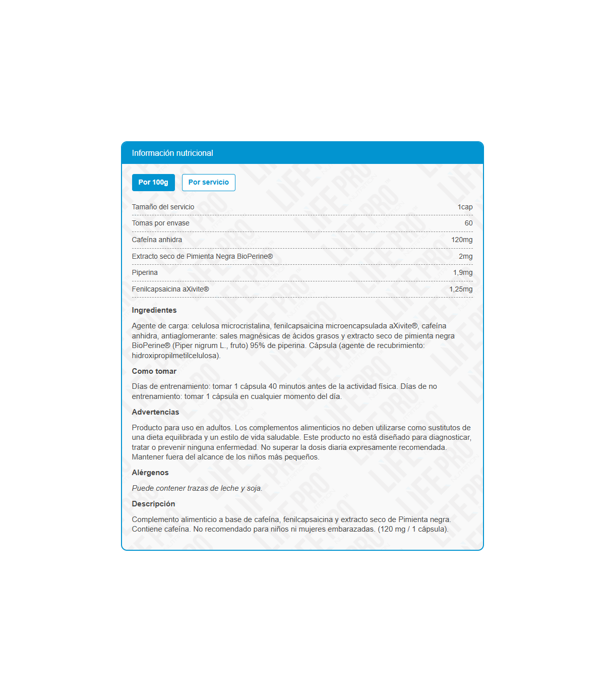 Este suplemento destaca por su versatilidad: puede usarse como preentreno estimulante o como apoyo en fases de definición y pérdida de grasa.